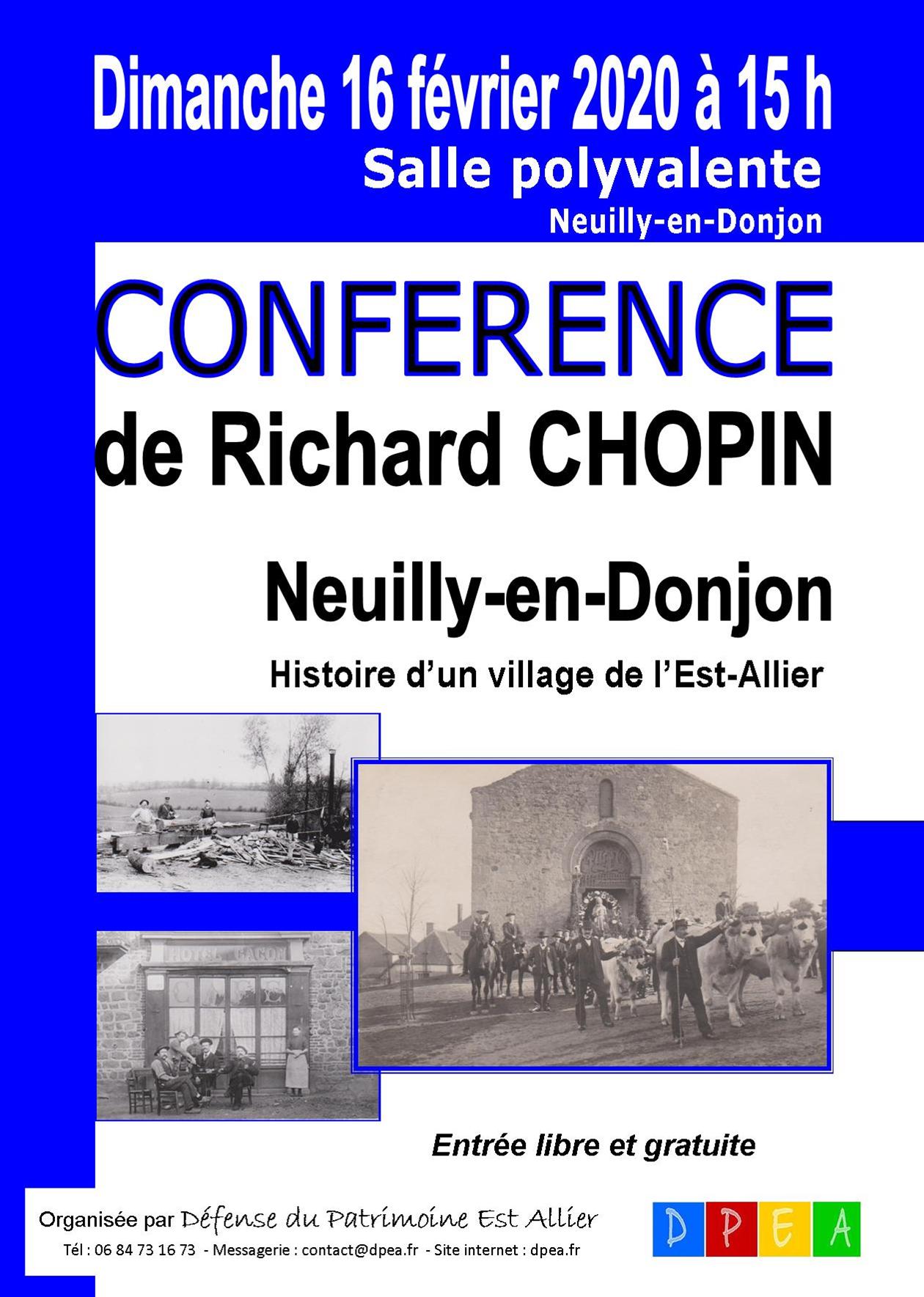 16.02.2020, Conférence et présentation du livre de Richard Chopin : "Neuilly-en-Donjon, histoire d'un pays de l'Est-Allier ".