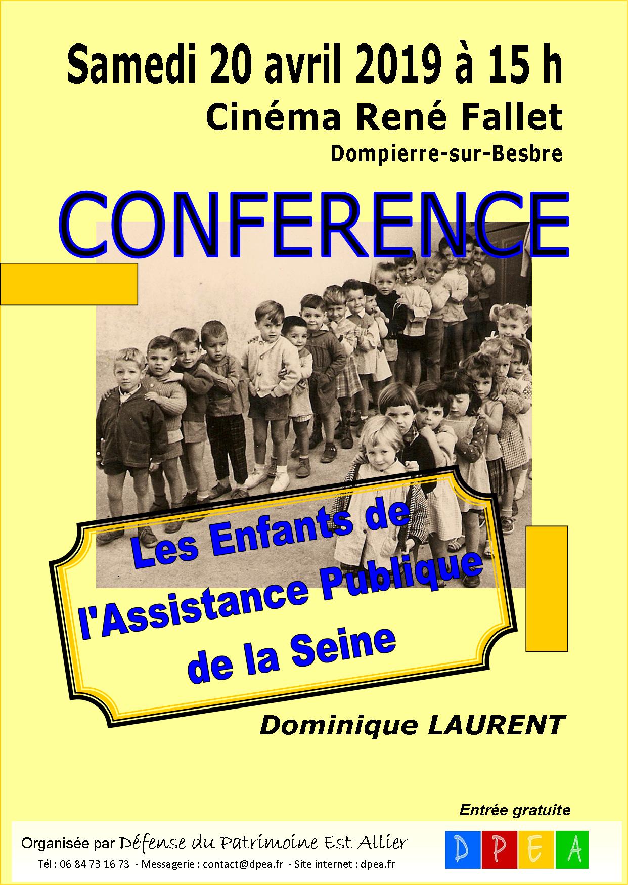 20.04.2019, Conférence de Dominique Laurent : "Les enfants de l'assistance publique de la Seine".