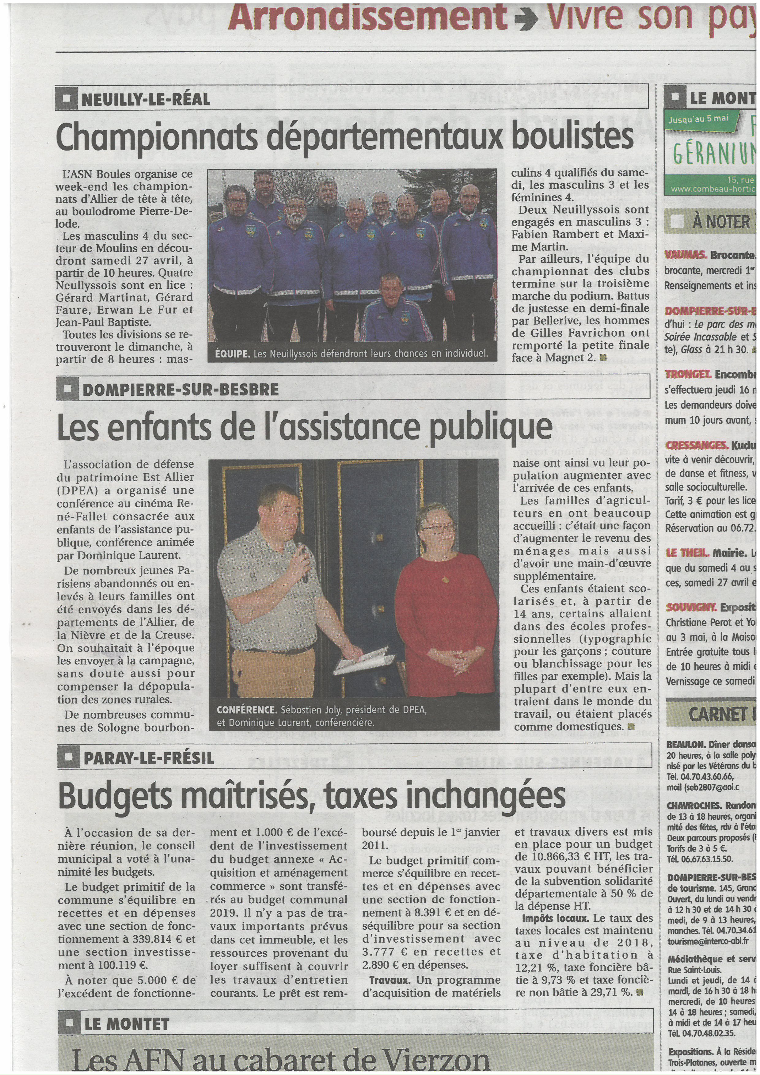 Défense du patrimoine Est-Allier - 216, avenue de La Gare 03290 Dompierre-sur-Besbre - 06 84 73 16 73 - contact@dpea.fr